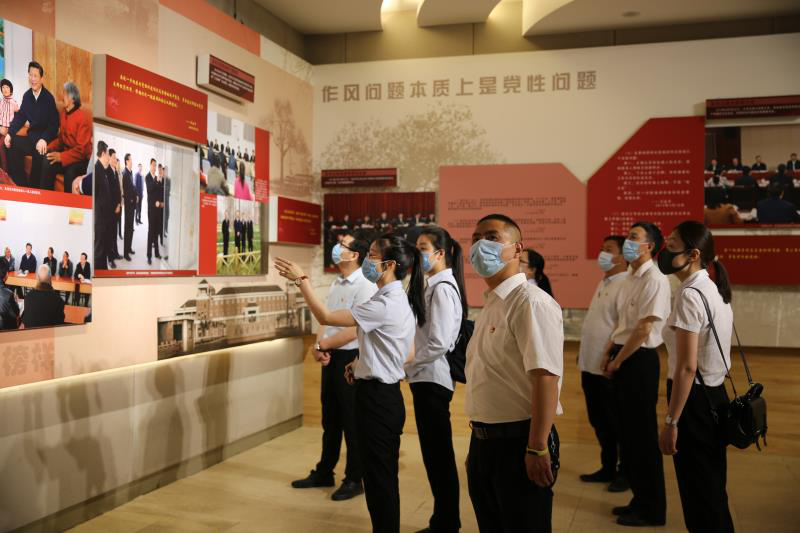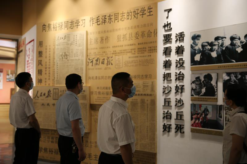 在每一處參觀點(diǎn),大家或駐足觀看,或認(rèn)真聆聽,或低頭沉思,或眼含熱淚,深切感懷焦裕祿同志的崇高且偉大精神。在焦裕祿紀(jì)念像前,大家重溫入黨誓詞。